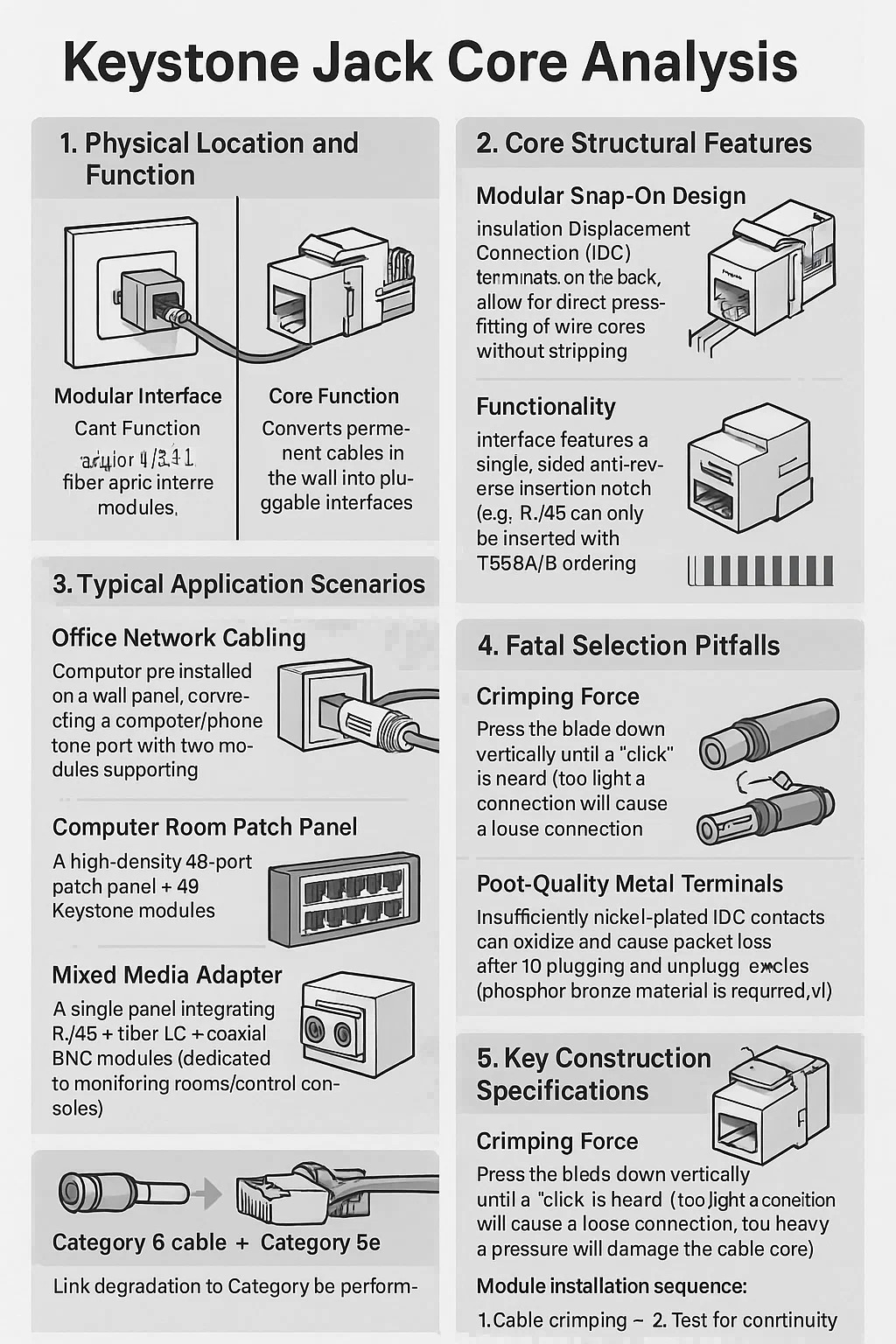 모듈형 인터페이스 캐리어: 벽면 패널/패치 패널에 내장된 사각형 포트로 RJ45, RJ11 또는 광섬유 인터페이스 모듈을 운반하여 장치와 네트워크 케이블 간의 연결을 가능하게 합니다.