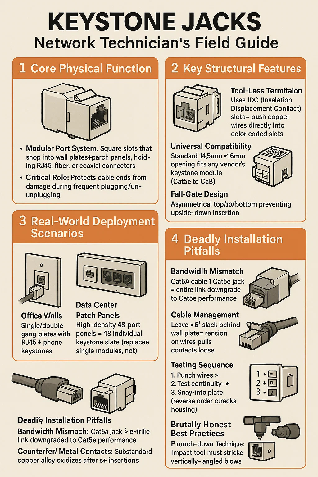 위조 금속 접점: 표준 이하의 구리 합금은 5회 삽입 후 산화 → 패킷 손실(인청동 접점 필요)
